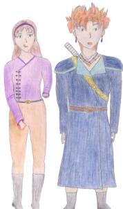 | Well, a long time ago, when I was really into Fushigi Yuugi, I was going to write a fanfic about how Kazangana Masako finds the Shijintenchisho after Tenkou was banished and the world was returned to normalcy yet again. Of course it was going to be a "self-insert" fanfic . . . perhaps it's a good thing that the only thing that came of it was this lame fanart. :-)